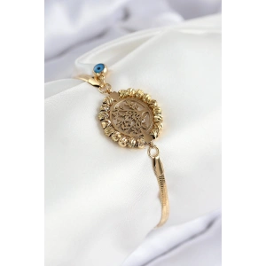 316L Çelik Nazar Boncuğu Detaylı Yaşam Çiçeği Model Gold Renk Kadın Bileklik