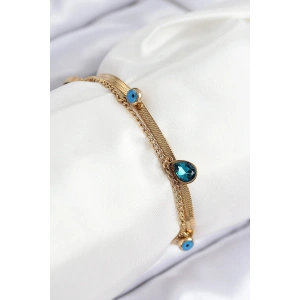 316L Çelik Nazar Boncuk Detaylı Mavi Zirkon Taşlı Model İtalyan Zincir Gold Renk Kadın Bileklik