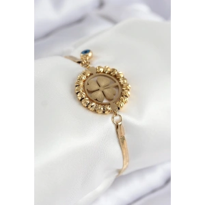 316L Çelik Nazar Boncuk Detaylı Yonca Model İtalyan Zincir Gold Renk Kadın Bileklik