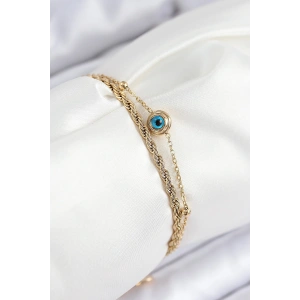 316L Çelik Nazar Boncuk Model Burgu Zincir Gold Renk Kadın Bileklik