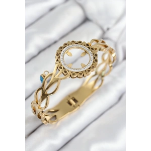 316L Çelik Zirkon Taşlı Göz Charm Model Gold Renk Kadın Bileklik