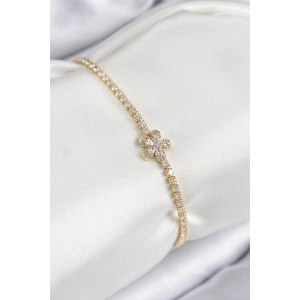 Pirinç Zirkon Taşlı Çiçek Model Gold Renk Kadın Bileklik