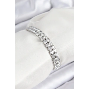Pirinç Zirkon Taşlı Çift Sıra Kare Model Gümüş Renk Asansörlü Kadın Bileklik