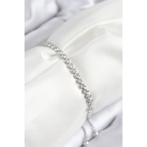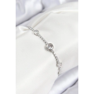 Pirinç Zirkon Taşlı Sıralı Daire Model Gümüş Renk Asansörlü Kadın Bileklik