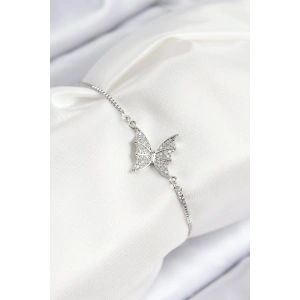 Pirinç Zirkon Taşlı Kelebek Model Gümüş Renk Asansörlü Kadın Bileklik