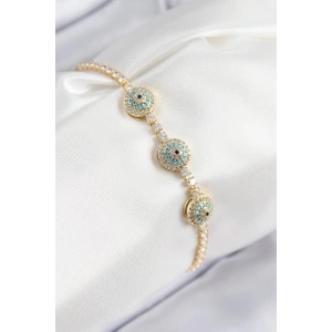 Pirinç Zirkon Taşlı Nazar Model Gold Renk Kadın Bileklik