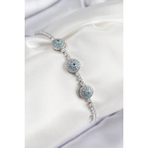 Pirinç Zirkon Taşlı Nazar Model Gümüş Renk Kadın Bileklik
