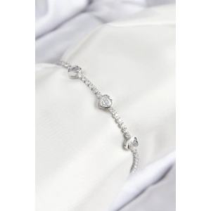Pirinç Zirkon Taşlı Sıralı Kalp Model Gümüş Renk Asansörlü Kadın Bileklik