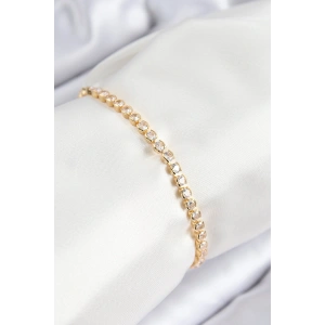 Pirinç Zirkon Taşlı Sıralı Daire Model Gold Renk Asansörlü Kadın Bileklik