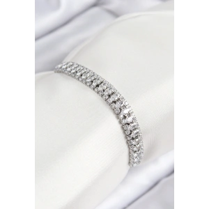 Pirinç Zirkon Taşlı Sıralı Model Gümüş Renk Asansörlü Kadın Bileklik
