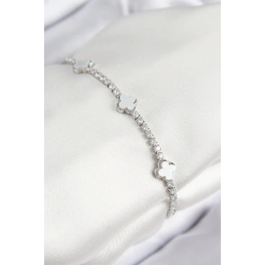 Pirinç Zirkon Taşlı Yonca Model Gümüş Renk Kadın Bileklik
