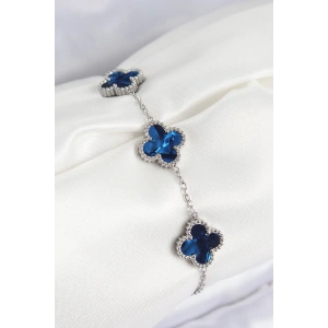 316L Çelik Sedefli Lacivert Gümüş Renk Yonca Kadın Bileklik