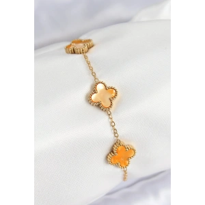 316L Çelik Sedefli Turuncu Gold Renk Yonca Kadın Bileklik
