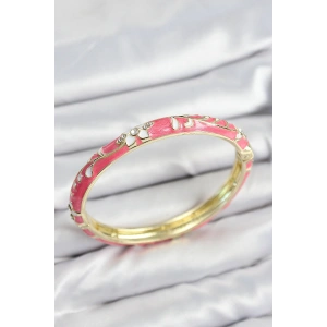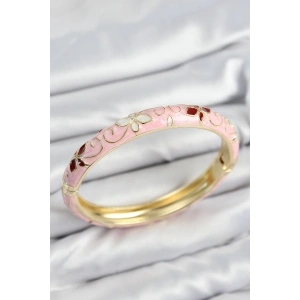 Mineli Pirinç Pembe Çiçek Motifli Gold Kadın Kelepçe