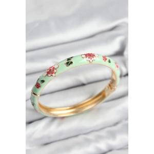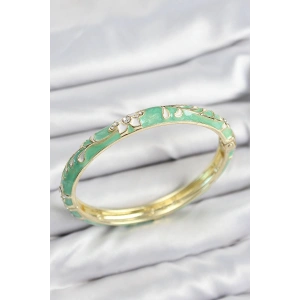 Mineli Pirinç Su Yeşili Çiçek Motifli Gold Kadın Kelepçe