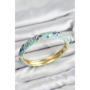 Mineli Pirinç Mavi Çiçek Motifli Gold Kadın Kelepçe