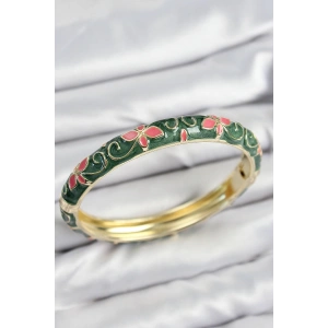 Mineli Pirinç Yeşil Çiçek Motifli Gold Kadın Kelepçe