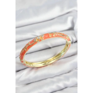 Mineli Pirinç Zirkon Taşlı Turuncu Çiçek Motifli Gold Kadın Kelepçe