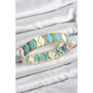 Pirinç Baklava Desenli Mavi Beyaz Gold Renk Lastikli Kadın Bileklik