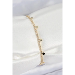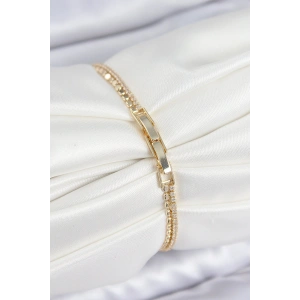 Pirinç Zirkon Taşlı Ezme Zincirli Sıralı Model Gold Renk Kadın Bilekilk