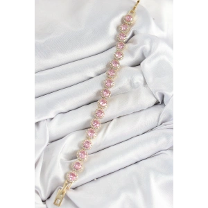 Pirinç Pembe Zirkon Taşlı Daire Baget Model Gold Renk VIP Seri Kadın Bileklik