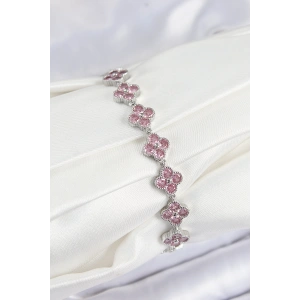 Pirinç Pembe Zirkon Taşlı Yonca Model Gümüş Renk VIP Seri Kadın Bileklik
