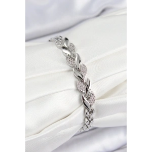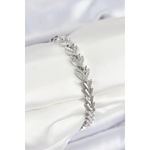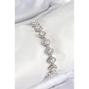 Pirinç Zirkon Taşlı Yonca Baget Model Gümüş Renk VIP Seri Kadın Bileklik