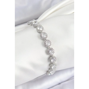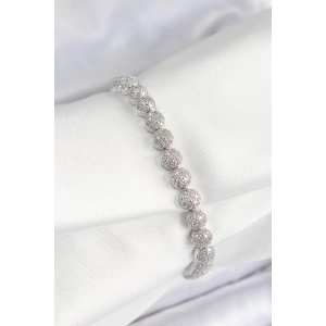 Pirinç Zirkon Taşlı Daire Baget Model Gümüş Renk VIP Seri Kadın Bileklik