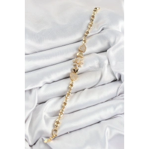 Pirinç Zirkon Taşlı Kalp Detaylı Çiçek Model Gold Renk Kadın Bileklik