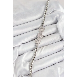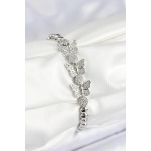 Pirinç Zirkon Taşlı Kelebek Model Gümüş Renk Kadın Bileklik