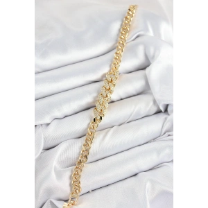 Pirinç Zirkon Taşlı Küba Zincir Model Gold Renk Kadın Bileklik