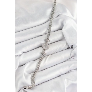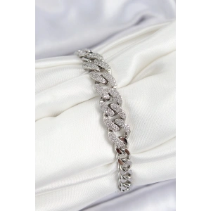 Pirinç Zirkon Taşlı Küba Zincir Model Gümüş Renk Kadın Bileklik