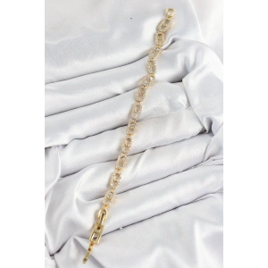 Pirinç Zirkon Taşlı Yarım Topcuk Model Gold Renk VIP Seri Kadın Bileklik