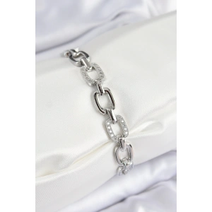 Pirinç Zirkon Taşlı Parçalı Zincir Model Gümüş Renk Kadın Bileklik