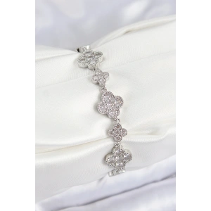 Pirinç Zirkon Taşlı Yonca Model Gümüş Renk VIP Seri Kadın Bileklik