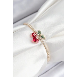 Pirinç Zirkon Taşlı Kiraz Model Gold Renk Asansörlü Kadın Bileklik