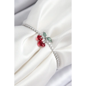 Pirinç Zirkon Taşlı Kiraz Model Gümüş Renk Asansörlü Kadın Bileklik
