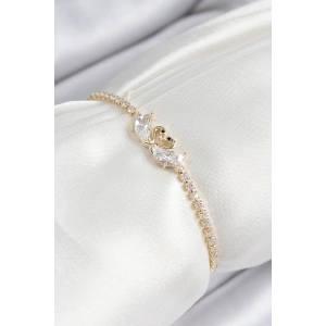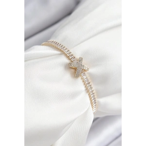 Pirinç Zirkon Taşlı X Detaylı Su Yolu Model Gold Renk Asansörlü Kadın Bileklik