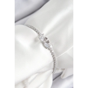 Pirinç Zirkon Taşlı Kuğu Model Gümüş Renk Asansörlü Kadın Bileklik