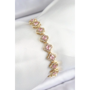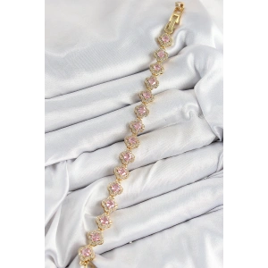 Pirinç Zirkon Taşlı Pembe Yonca Baget Model Gold Renk VIP Seri Kadın Bileklik