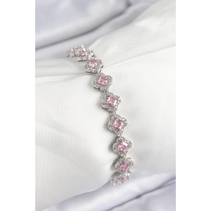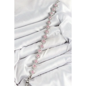 Pirinç Zirkon Taşlı Pembe Yonca Baget Model Gümüş Renk VIP Seri Kadın Bileklik