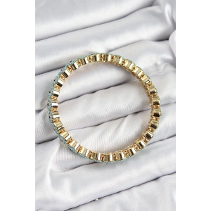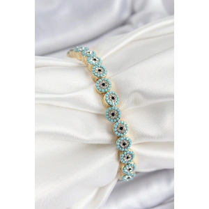 Pirinç Zirkon Taşlı Turkuaz Nazar Model Gold Renk Lastikli Kadın Bileklik
