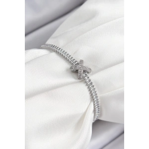 Pirinç Zirkon Taşlı X Detaylı Su Yolu Model Gümüş Renk Asansörlü Kadın Bileklik