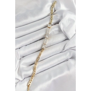 Pirinç Karışık Zirkon Taşlı Baget Model Gold Renk VIP Seri Kadın Bileklik