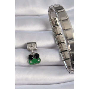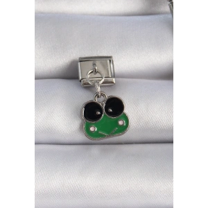 316L Çelik Gümüş Renk Sallantılı Yeşil Kurbağa Figür Nomination Charm
