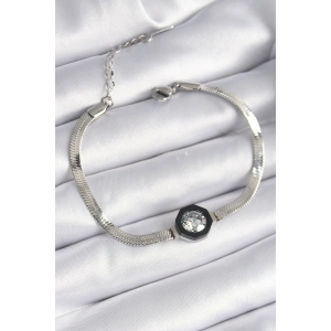 316L Çelik Gümüş Renk Zirkon Taşlı İtalyan Zincir Model Kadın Bileklik