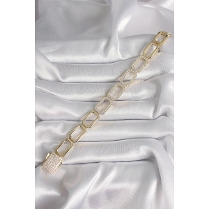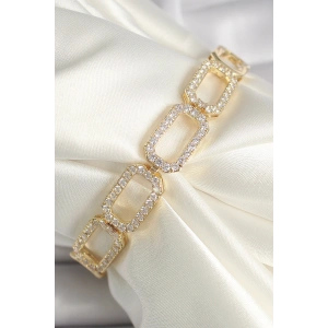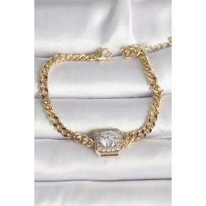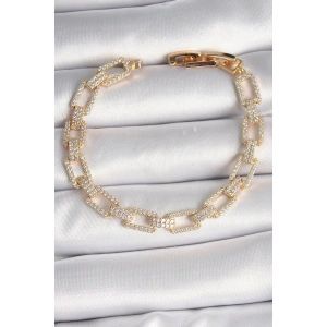 Pirinç Gold Renk Zirkon Taşlı Zincir Model VIP Seri Kadın Bileklik