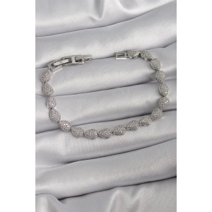 Pirinç Gümüş Renk Zirkon Taşlı Damla Model VIP Seri Kadın Bileklik