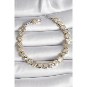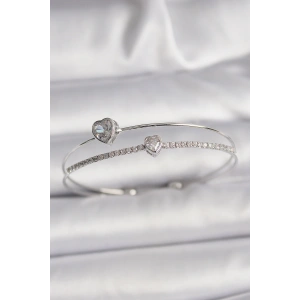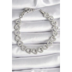 Pirinç Gümüş Renk Zirkon Taşlı Kalp Model Kadın Bileklik