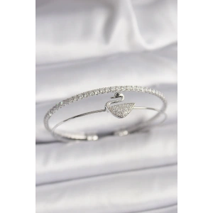 Pirinç Gümüş Renk Zirkon Taşlı Kuğu Model Kadın Bileklik